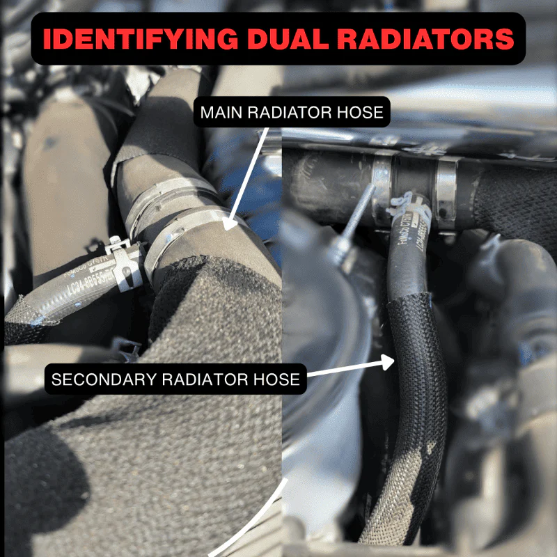 Does not fit trucks with a 2nd radiator hose. Please see graphic in the image gallery.